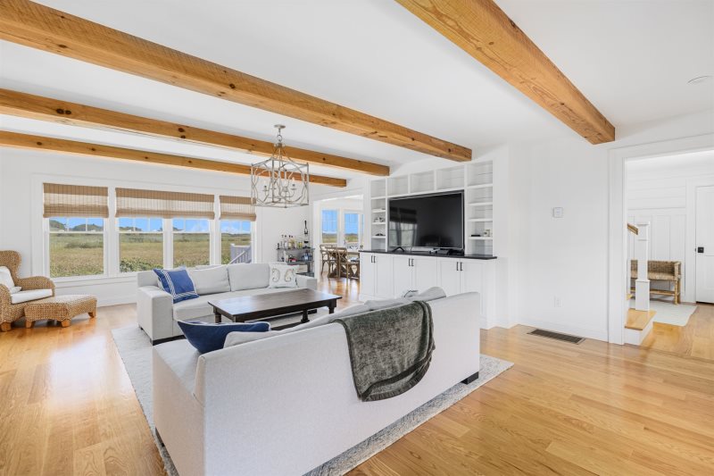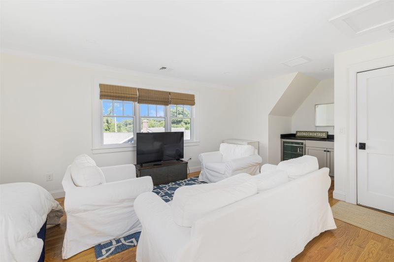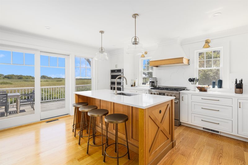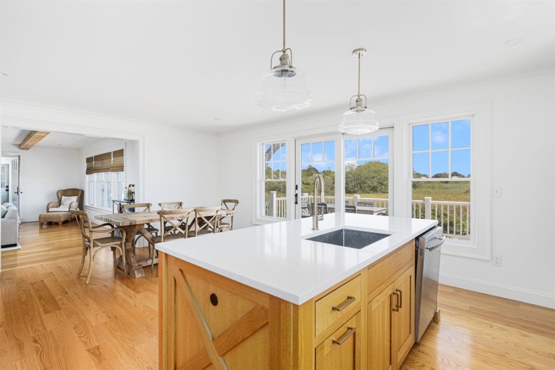 Incredible home in the heart of Quonnie with beautiful views of Quonnie Pond and distant ocean views. This home has spectacular features and is pristine. Spend the morning sipping coffee outdoor and enjoying the views and in the evening enjoy dining al fresco on the patio. Indoor is airy and bright with a modern and well appointed kitchen. There is a very comfortable living area with a large screen tv, perfect for evening movies. After a day at central beach ( beach pass included) come home and rinse off in one of the two outdoor showers before enjoying all the comforts that this home has to offer. A short five minute walk to the beach. This home is beautiful and a perfect place to enjoy a summer vacation.